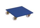 Plywood panel with grooved rubber mat bonded to load surface; Colour black; Plastic tyres with roller bearing, white; Or grey non-marking thermoplastic rubber tyres on plastic wheel rim with precision deepgroove ball bearings; thread guard; 4 swivel castors; All dolly products are available in packaging units of 2 dollies.