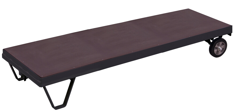 Construction mécano-soudée en tube d'acier; comprenant 2 tréteaux; cotyle sphérique; verrouillage de sécurité; plateau de chargement en contreplaqué hydrofuge surface sérigraphiée, antidérapant; revêtement époxy bleu RAL 5010; résistant aux chocs et aux rayures; roues en caoutchouc élastique ou polyuréthane avec jante en aluminium avec roulement à billes de précision; montée sur un arbre d’essieux.