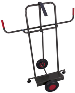 Spawana konstrukcja stalowa ze skośną powierzchnią użytkową z blachy stalowej; nachylenie 22°; do transportu drewnianych płyt i płyt z tworzyw sztucznych o dużej powierzchni; z przestawnym zabezpieczeniem, max. pryzma płyt 200 x 1.500 mm (głębokość/wysokość); malowanie proszkowe farbą RAL 5010 (niebieski); wysoka odporność na uszkodzenia mechaniczne; koła pneumatyczne, felga stalowa lub z pełnej gumy, felga specjalna plastikowa z precyzyjnym łożyskiem kulkowym i kołpakiem z tworzywa; dodatkowo 2 koła podporowe.
